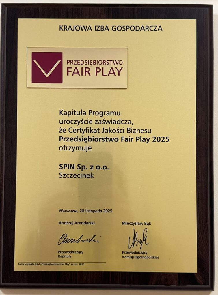Działamy w oparciu o zdefiniowane standardy i kodeks etyczny. Od kilku lat firma Spin postawiła sobie nowy ambitny cel: zrewolucjonizowanie branży usług biuro-serwisowych i wprowadzenie nowych standardów współpracy z partnerami, integrowanie środowisk biznesowych, prowadzenie forum wymiany doświadczeń / informacji i wzajemnego wsparcia szczecineckich przedsiębiorców zarówno z sektora państwowego jak i prywatnego.