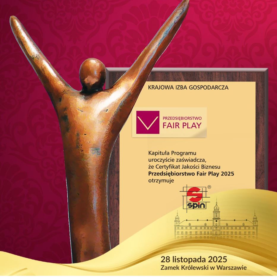 Spin Sp. z o.o. to polska spółka utworzona w 1994 roku ze 100% polskim kapitałem. Specjalizujemy się w kompleksowej obsłudze firm w zakresie materiałów biurowych, spożywczych, higienicznych, profesjonalnej chemii sprzątającej oraz materiałów eksploatacyjnych do maszyn i urządzeń oraz świadczymy szereg usług związanych z technologiami wydruku, wykonania pieczątek, personalizacji czy reklamy.
